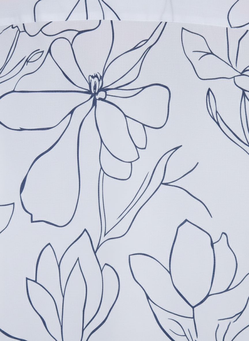 White and Blue Floral Outline Fabric Print