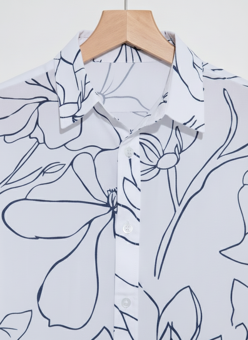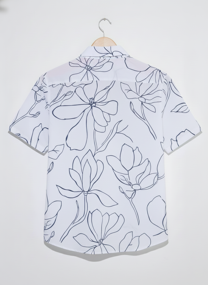 Bold Floral Outline Cotton Shirt - French Placket, Clean Finish Collar