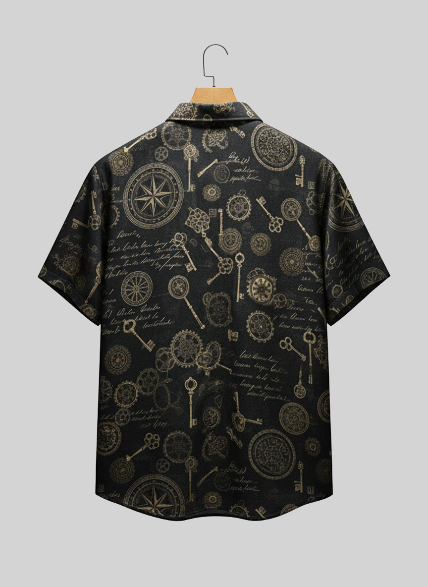 Black Vintage Compass and Keys Print Shirt for MenBlack Vintage Compass and Keys Close Print Shirt for MenBlack Vintage Compass and Keys Back Side Print Shirt for Men