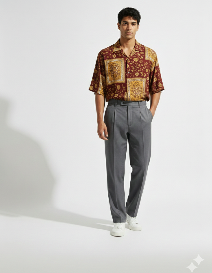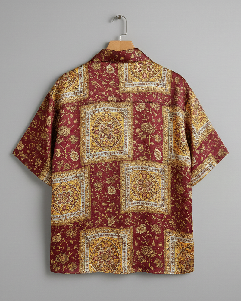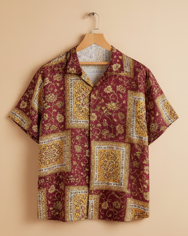 Crafted from smooth satin fabric, this maroon half-sleeve shirt features rich vintage floral patterns with a subtle sheen. Designed for a relaxed yet refined look, it offers effortless elegance, comfort, and a statement style for special occasions or elevated casual wear.