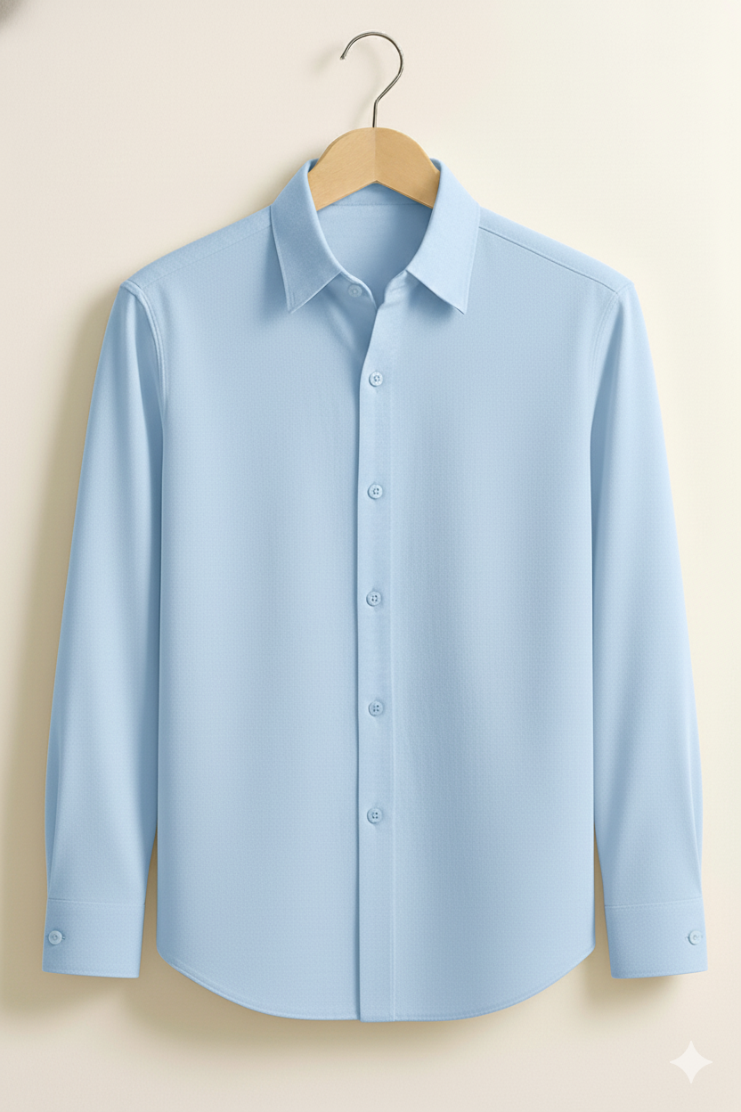Experience timeless elegance with this Classic Sky Blue Stitchless Placket Shirt, crafted from premium 100% cotton fabric for all-day comfort and breathability. The smooth texture and refined lilac tone make it a versatile choice for both formal and casual occasions.