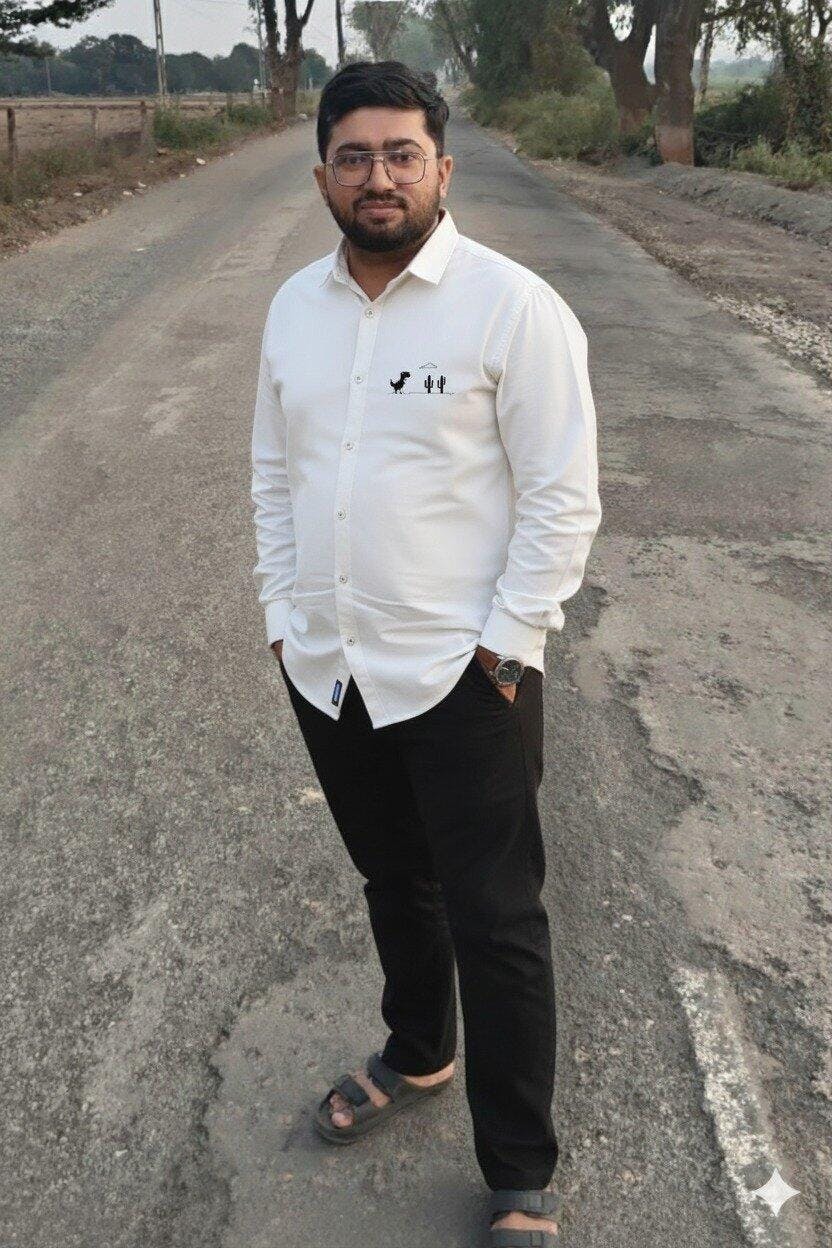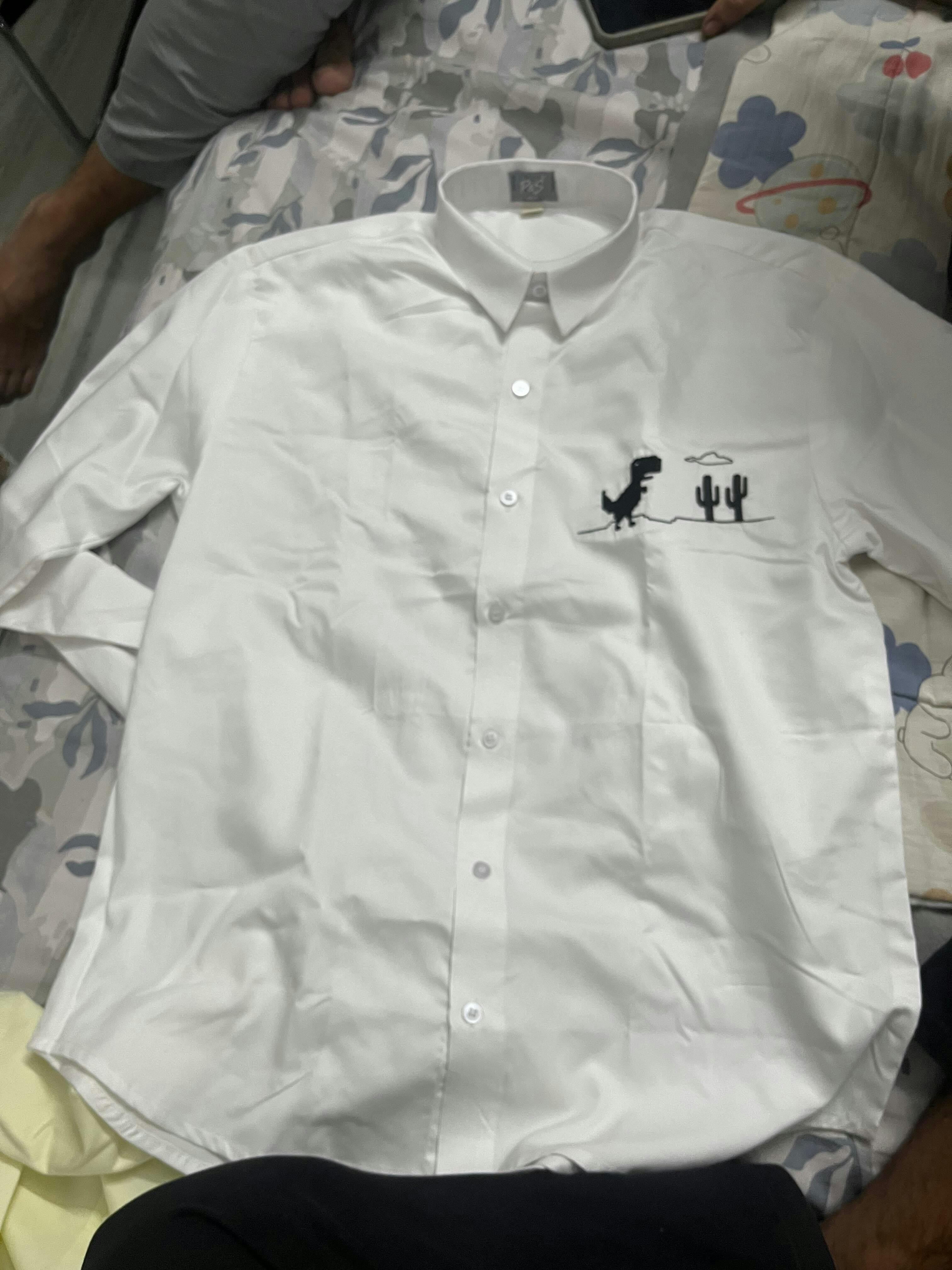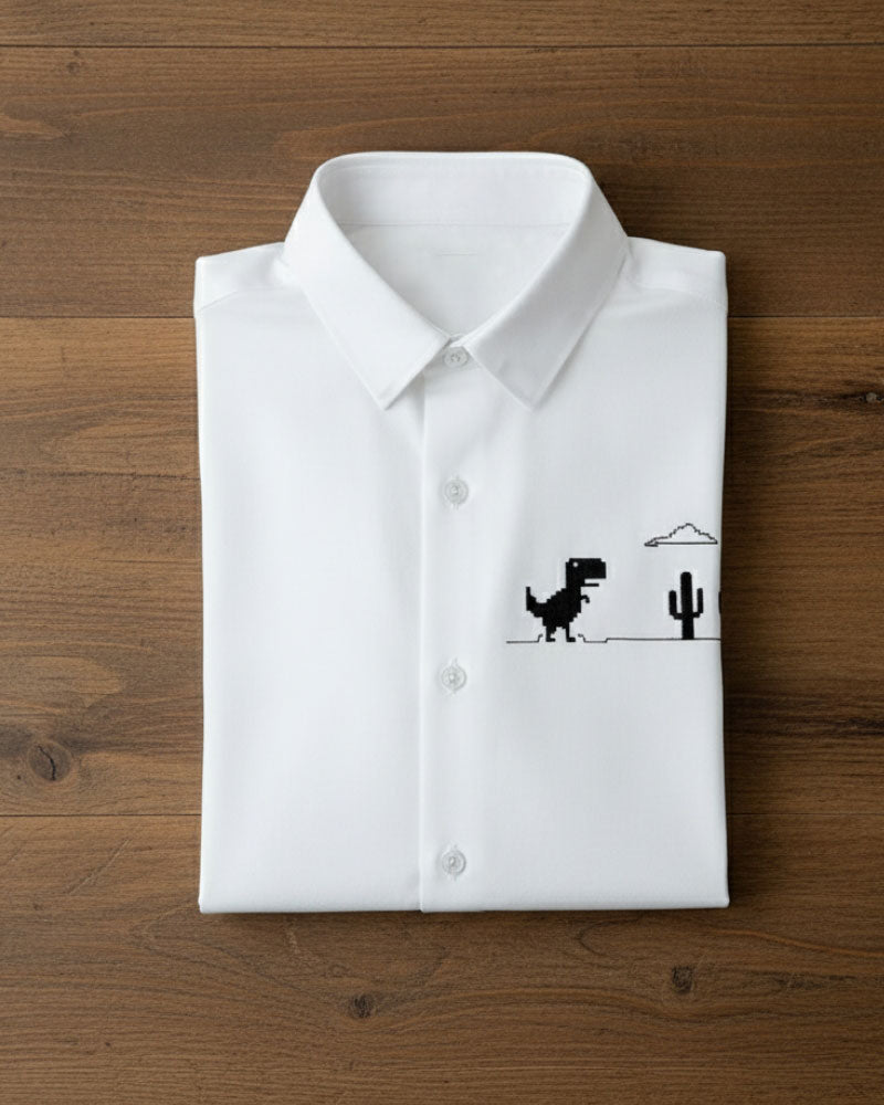 Made from soft, premium cotton, this off-white shirt brings comfort while keeping your style fresh. The highlight? A carefully embroidered pixel T-Rex on the chest — inspired by the Chrome offline dinosaur game we all know and love.