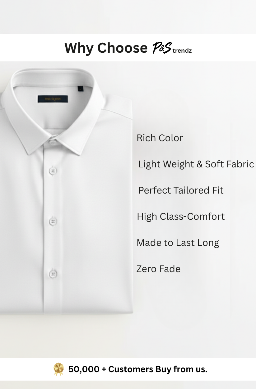 Experience timeless elegance with this Plain White Stitch-less Placket Shirt, crafted from premium 100% cotton fabric for all-day comfort and breathability. The smooth texture and refined lilac tone make it a versatile choice for both formal and casual occasions.